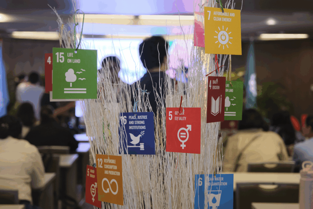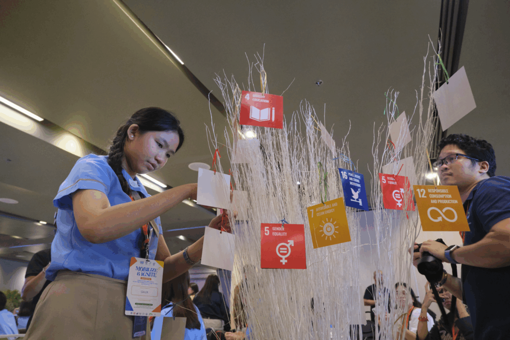 The celebration concluded with a youth pact ceremony where participants selected ribbons with corresponding Sustainable Development Goals and tied them to an SDG tree—a symbolic installation representing collective commitment. They then placed their pre-written pledges into a jar, symbolizing a capsule of commitment.