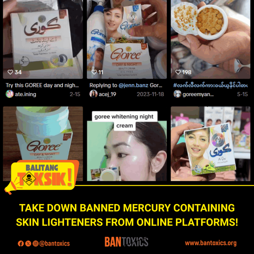 “Existing health and e-commerce regulations in the country should prevent social media sites and online shopping platforms from allowing the illegal trade of mercury-added SLPs. Consumer protection from toxic exposure must be ensured in all online product transactions,” said BAN Toxics.