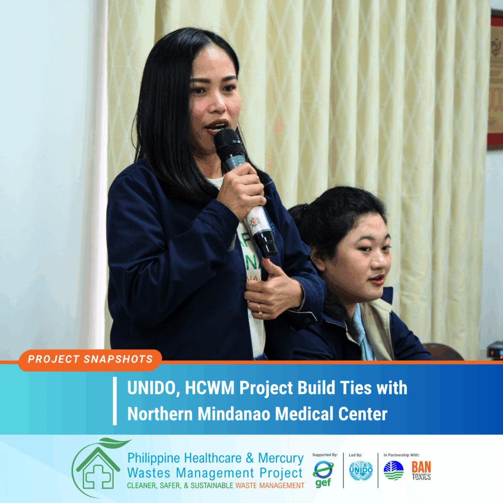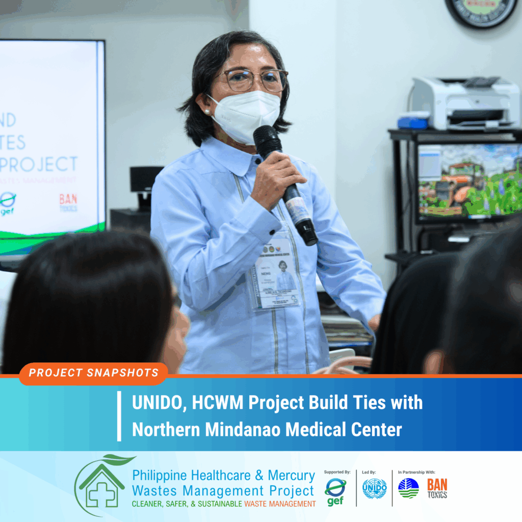 The HCWM Project aims to improve healthcare waste management in the country, with a special focus on reducing the release and emissions of hazardous substances such as mercury, dioxins and furans. Implemented by the UNIDO and the DENR-EMB, the project receives funding support from the Global Environment Facility (GEF), with BAN Toxics as the executing partner.