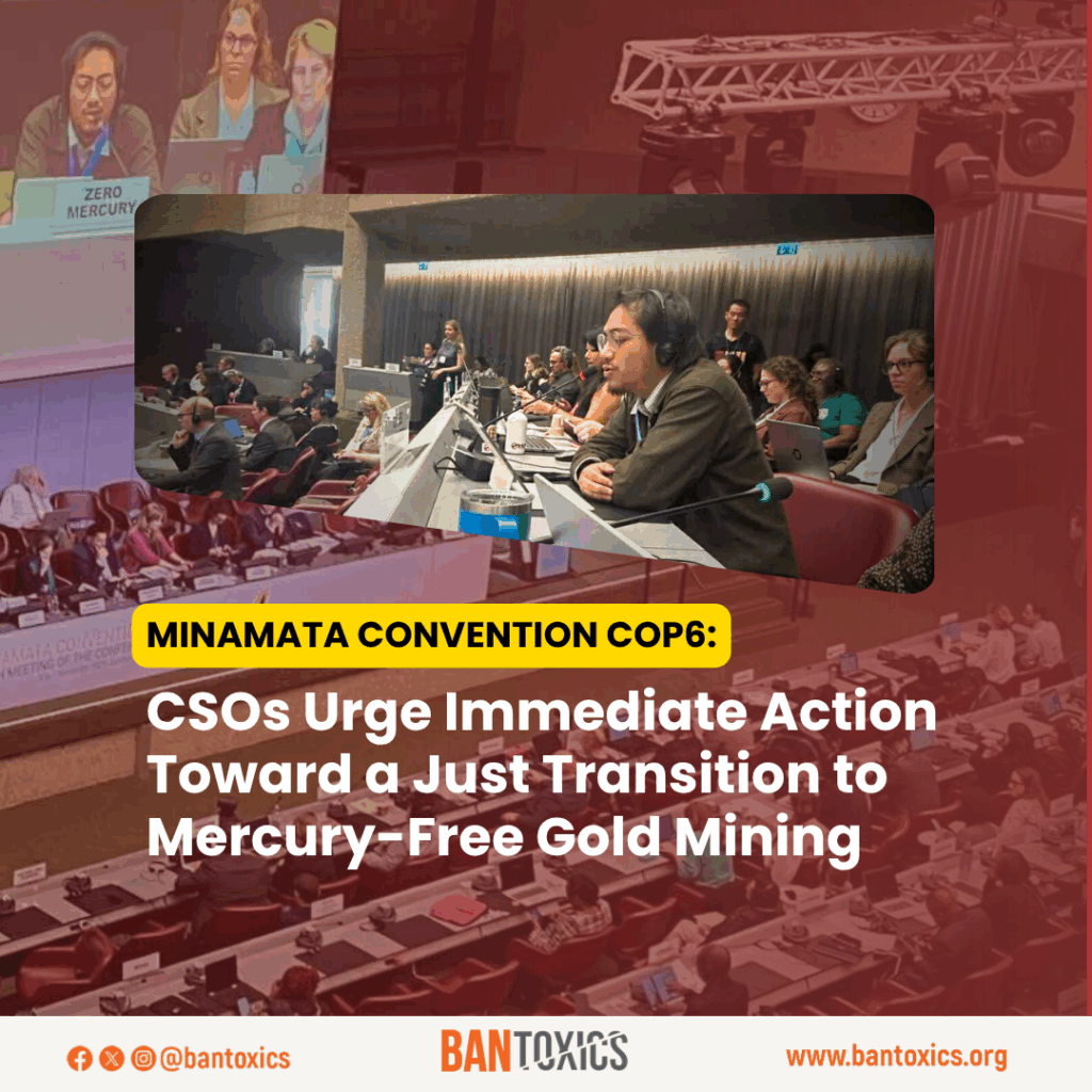 Ahead of COP6, BAN Toxics held a consultation with the National Coalition of Small-Scale Miners of the Philippines, Inc. (NCSSMPI) to discuss a proposal to the Minamata Convention on setting a phase-out date for mercury use in ASGM. The consultation underscored the need for a rights-based just transition framework that recognizes how mercury use in the sector is largely driven by poverty, limited capacity, and lack of access to safer technologies.